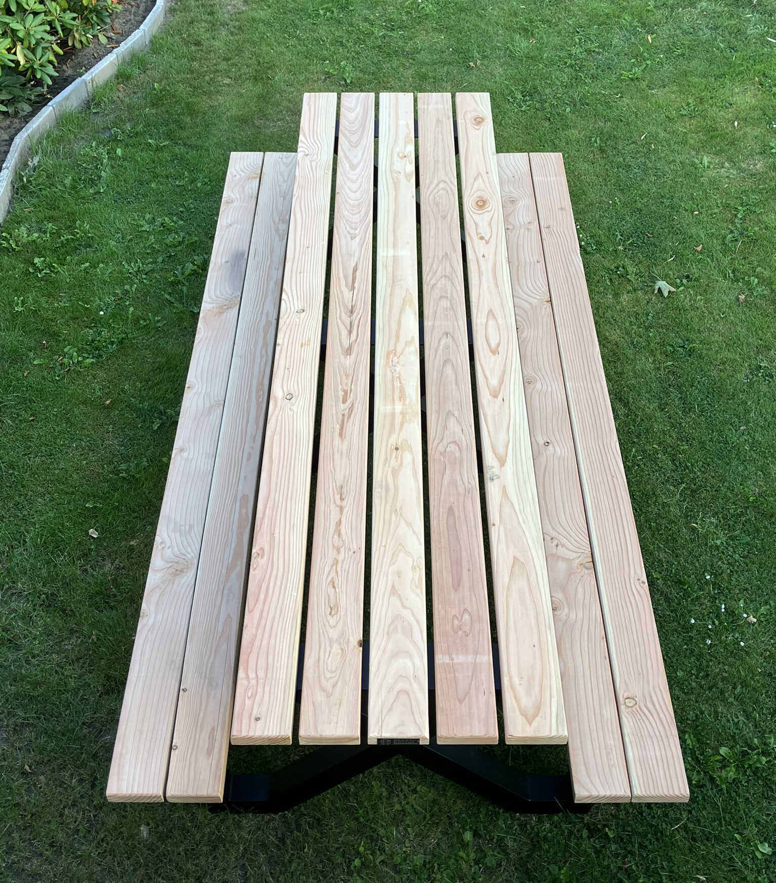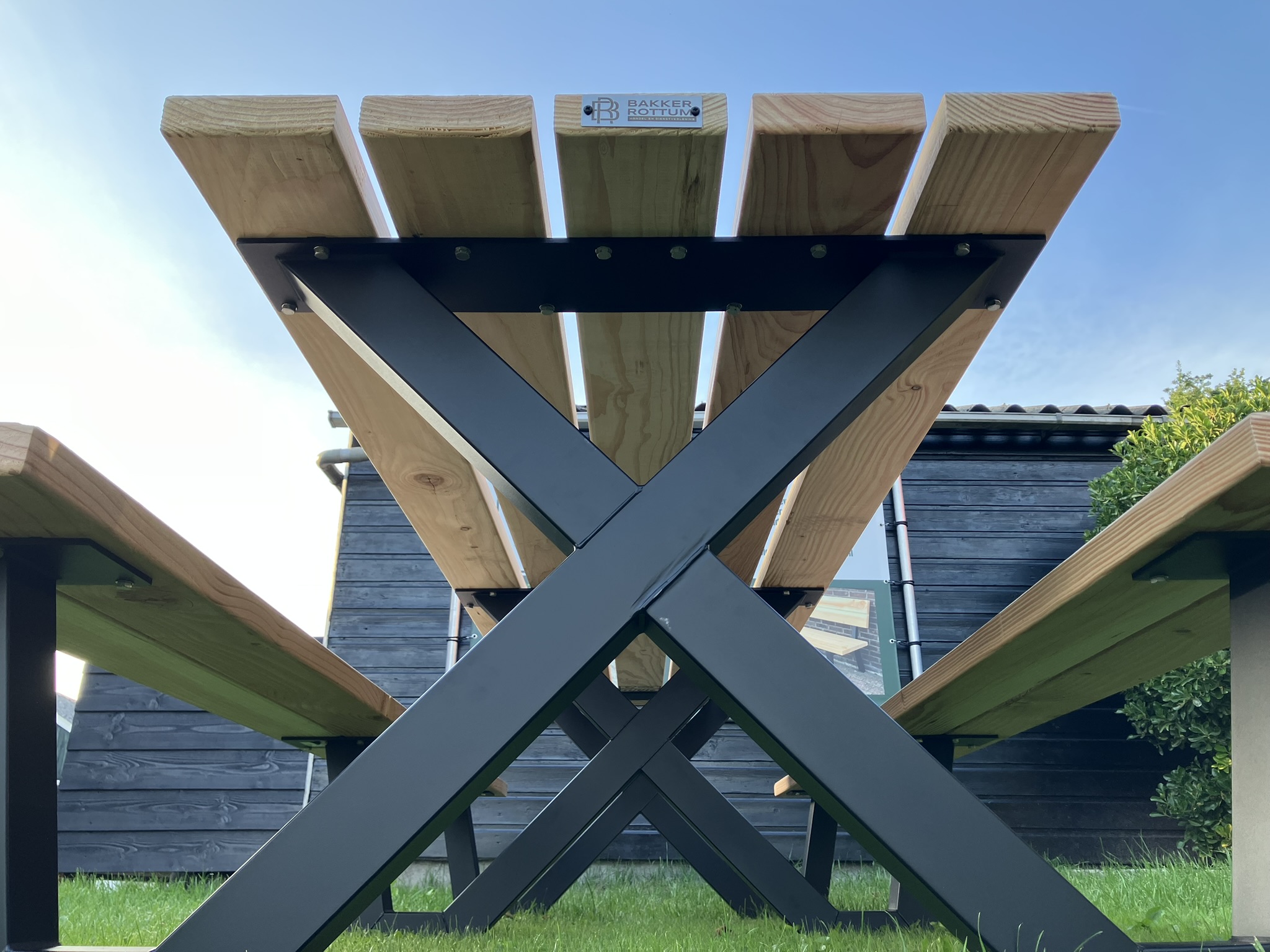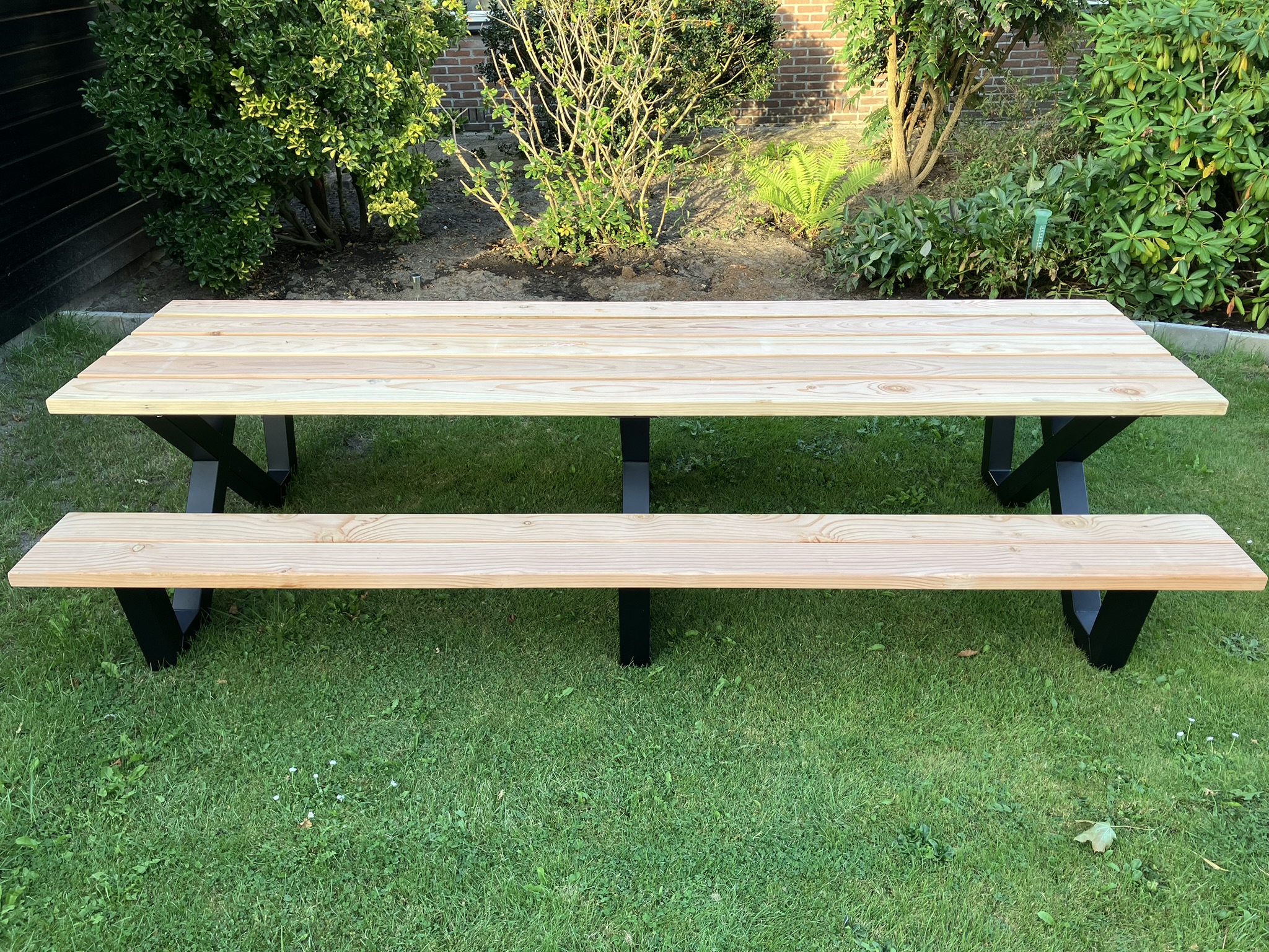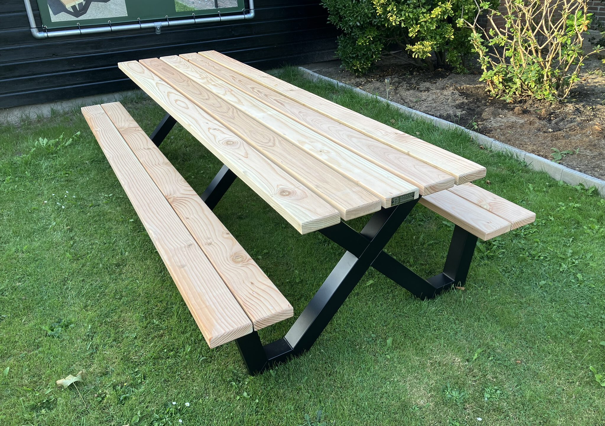 Breng sfeer, comfort en kwaliteit samen met onze robuuste Douglas picknicktafels met stalen frame!